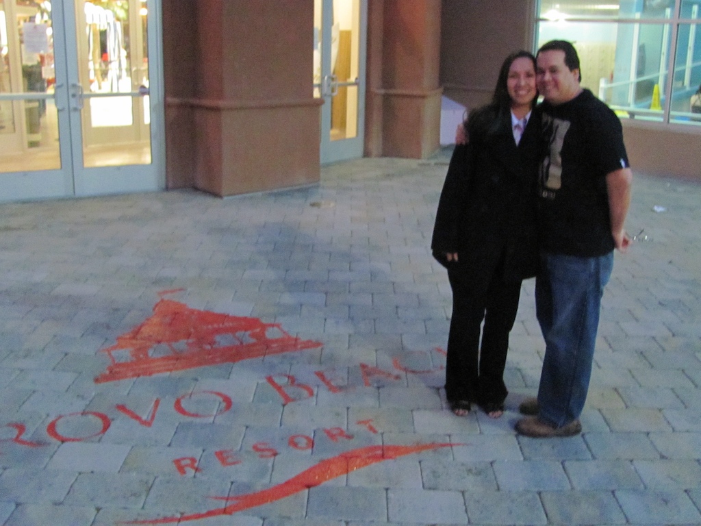 Terry and Claire in front of the Provo Beach Resort, which does not have a hotel or golf course associated with it.