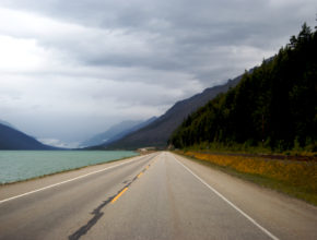 Fraser River and Highway 16 through Mt. Robson Provincial Park in British Columbia, Canada.
