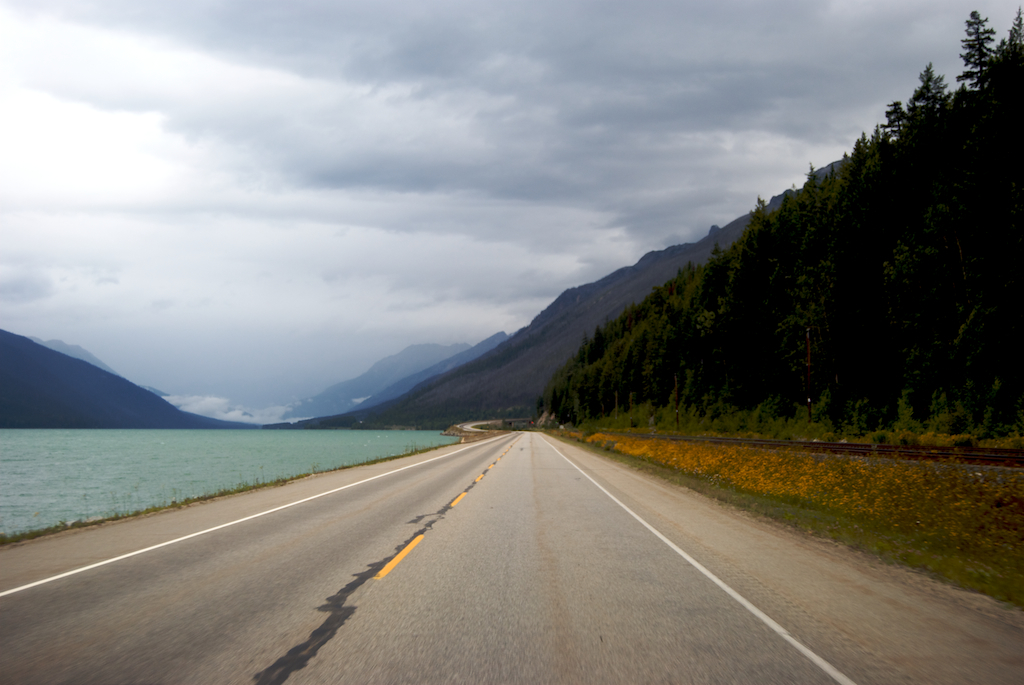 Fraser River and Highway 16 through Mt. Robson Provincial Park in British Columbia, Canada.