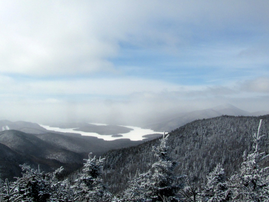 View of Lake Placid (the lake) taken from the top of the summit lift at Whiteface Mountain.