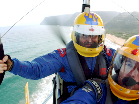 From the same vacation as the punched fish, but this one is noteworthy because, well, I went ultralight flying on Kauai. I hate heights, doing this was sort of an attempt to tempt fate or break the cycle or something. This post is also sort of interesting because the pilot I went with (pictured) died a few years ago in an ultralight accident; lastly, one-day ultralight introductory instruction flights are no longer available in Hawaii.