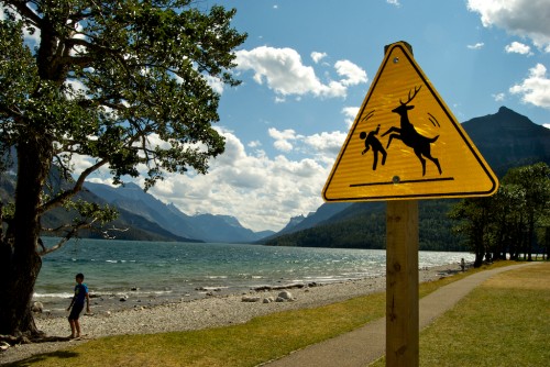 One way in which they are *not* analogous, however, is that the Crypt Lake hike trailhead can only be accessed by taking a boat over from the Waterton Townsite harbor. The boat runs twice in the morning, then picks people up again in the evening. Thus the group dynamic: when you get to the trailhead, there are 50 or so people arriving at the same time and, thus, starting their hike at the same time. And when they do, it looks like this: