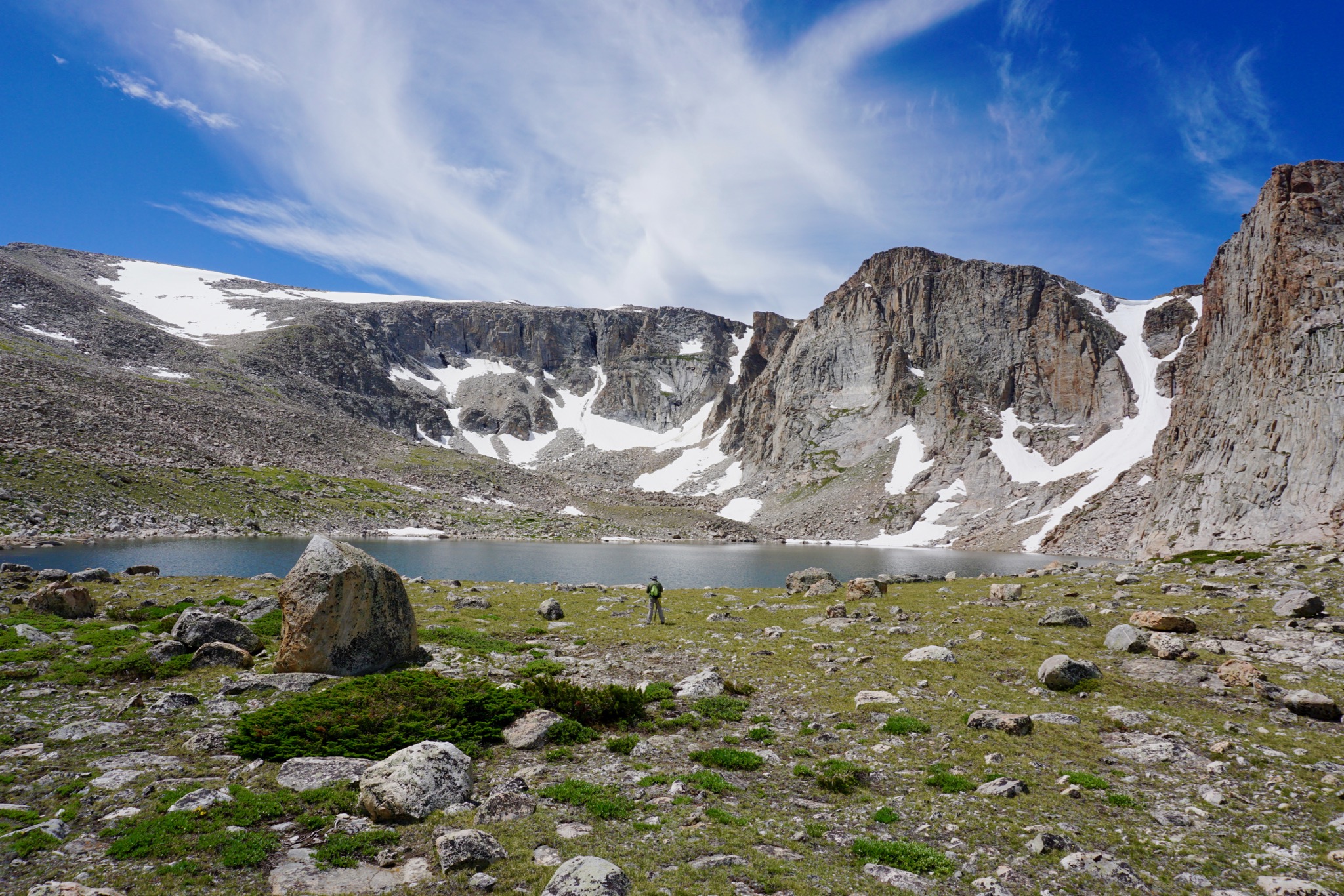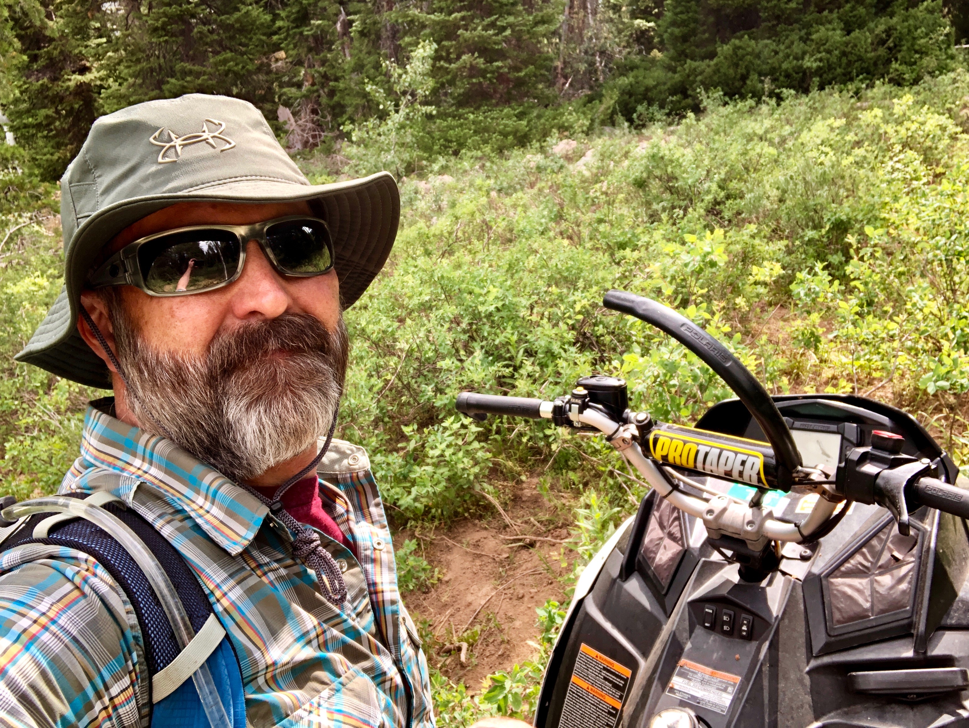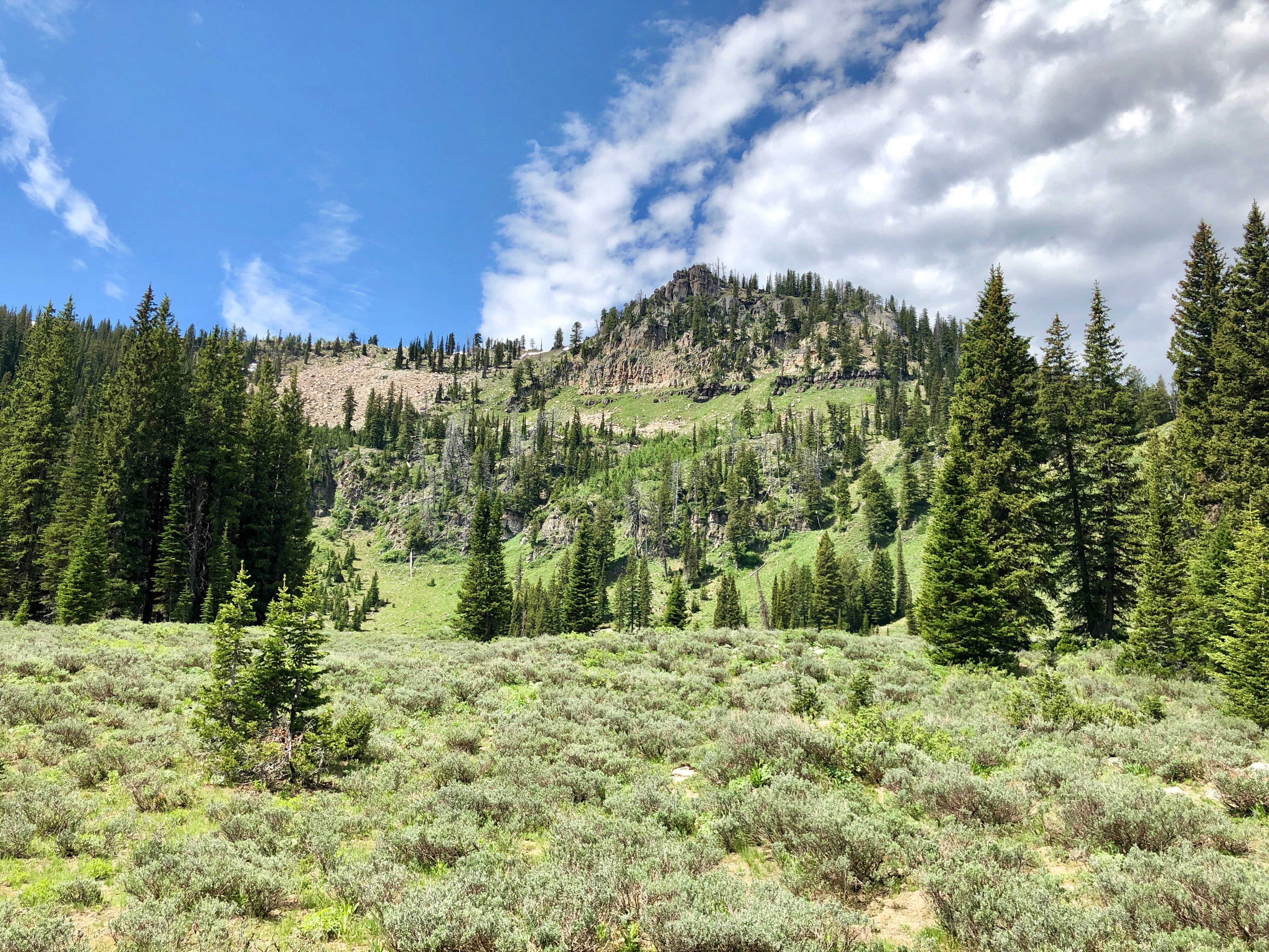 Weirdly, the bear seemed a lot closer in real life than in the photos. Probably 200 yards away? I dunno. Maybe 300. We also tried a photo version that also included Ben and me as sort of a bear, bear, demi-bear situation, but it didn’t work out. The one bear just turns into a black speck.