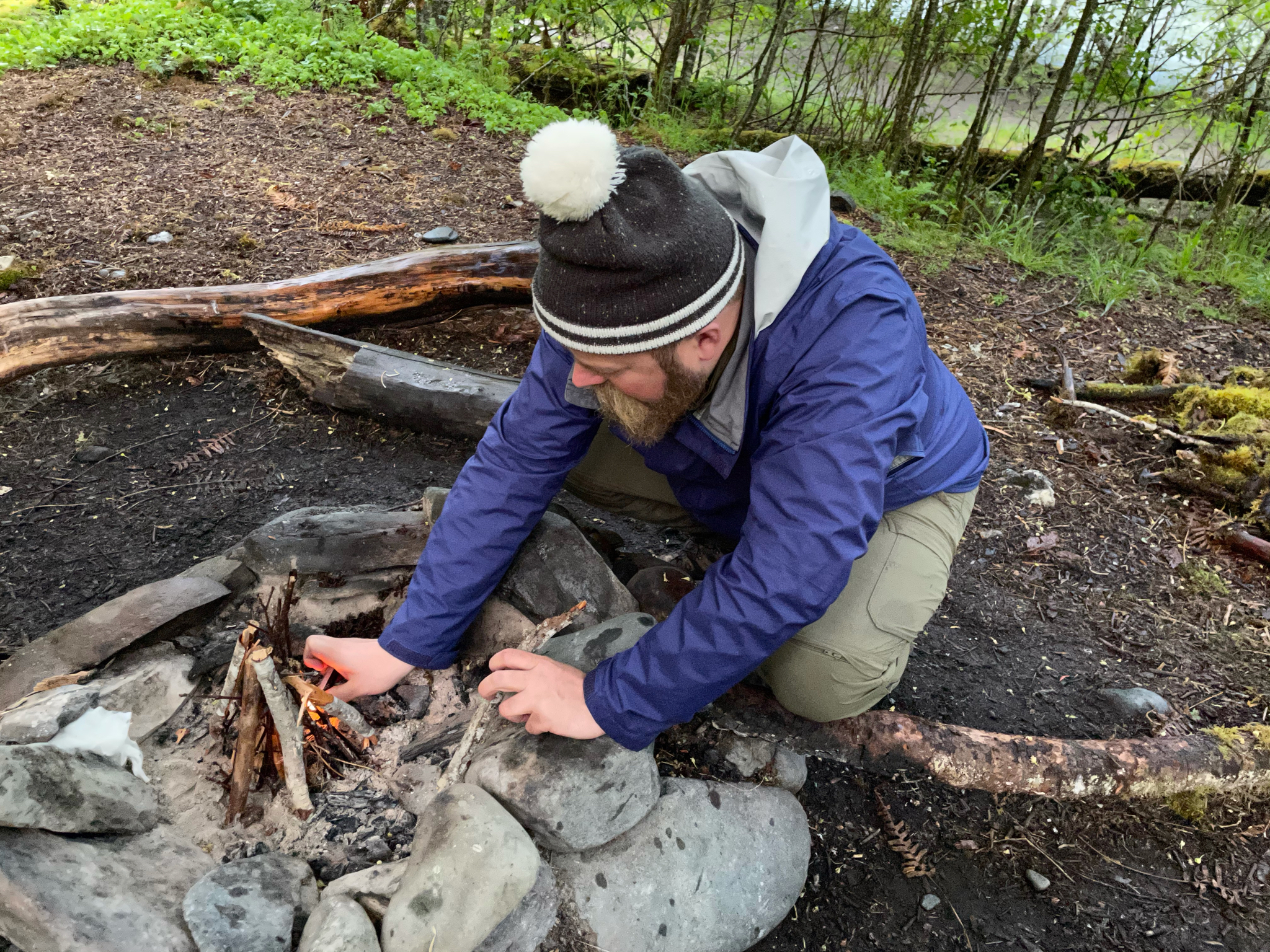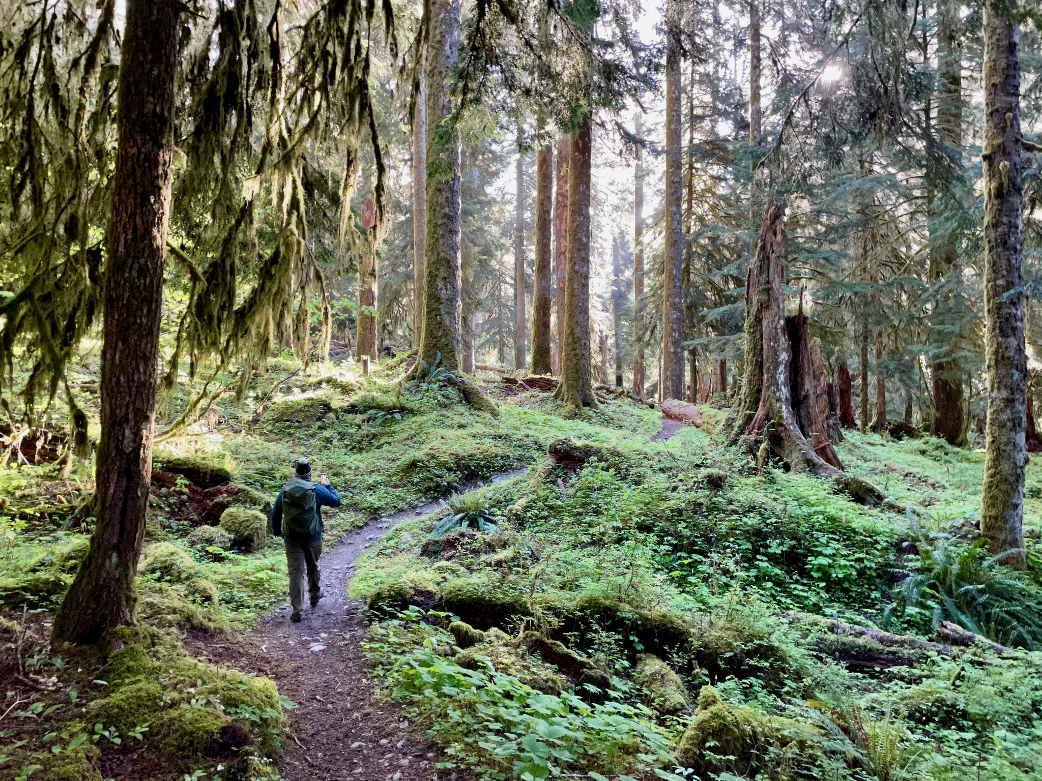 One forgets that being damp and not moving around can be kind of miserable. The air temperature was technically in the 50s most of the day, but it was cold at camp. Due to the damp. Both nights. I dunno. Backpacking in the rainforest while complaining about the weather, etc., but it was pretty easy to talk ourselves into going to bed before sun-down just to get out of the damp air and stay warm. While hiking, though, those mid-50s temps were swell.