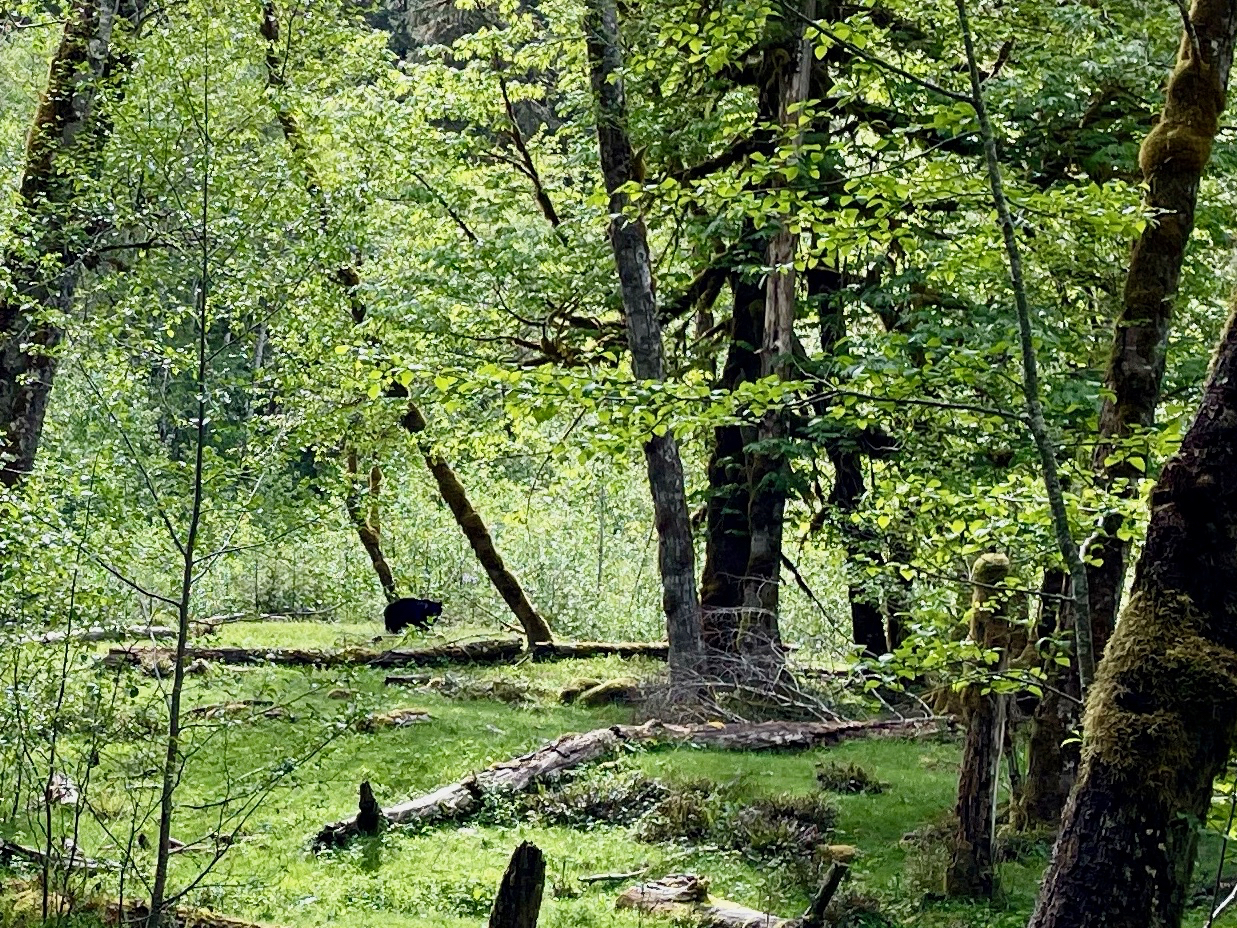 We then headed back to our campsite at O’Neill Creek. No more (non-homo sapien) bears. Grunting elk. A lot of trees, ferns, moss, river, creeks, etc. The usual. Was raining when we got back to camp. Was raining when we ate dinner at 4PM. Was raining when we went to bed at 7:30. It rained.