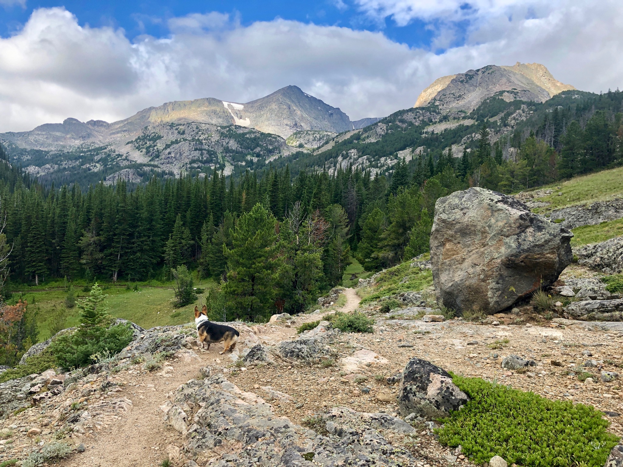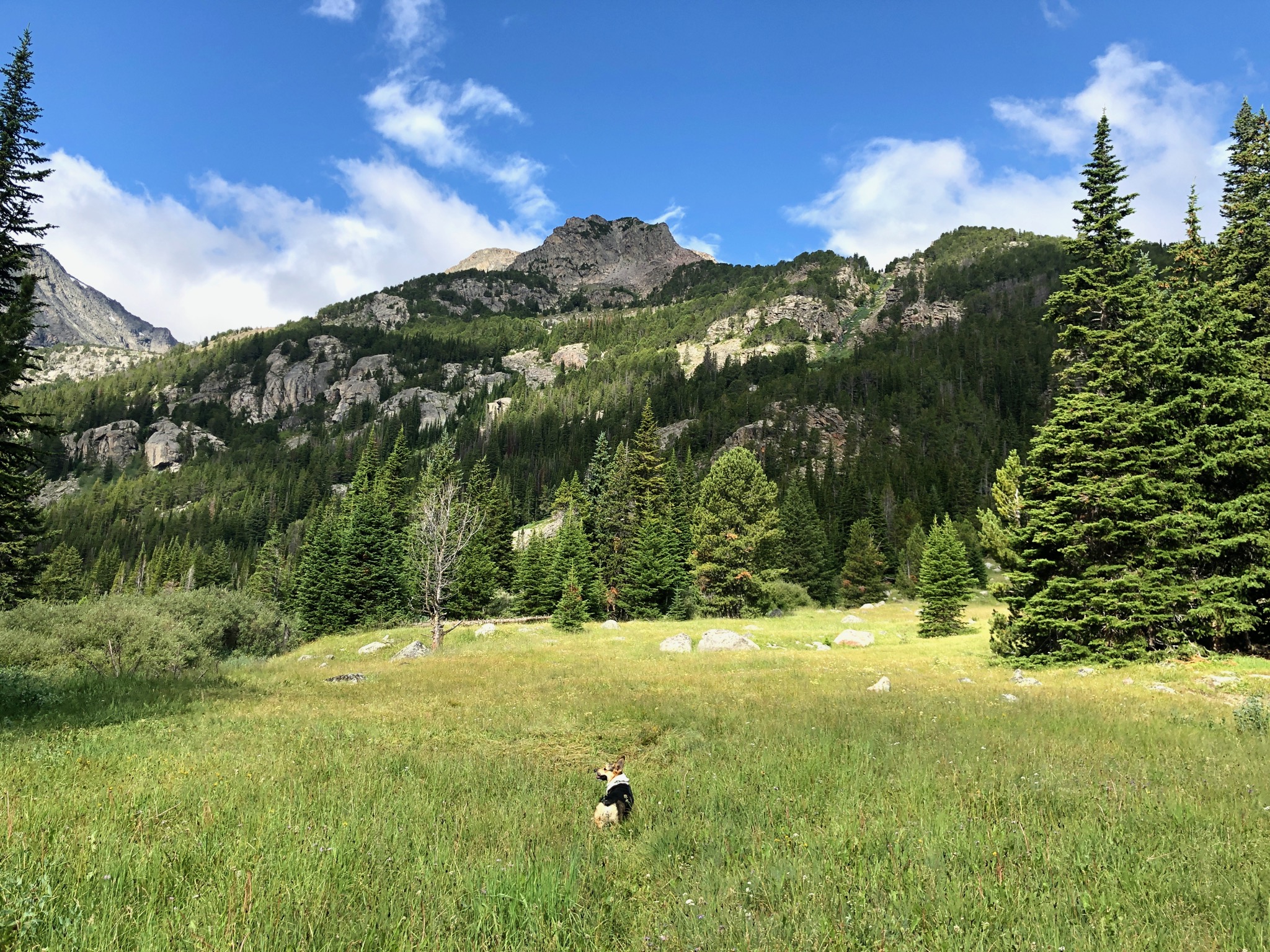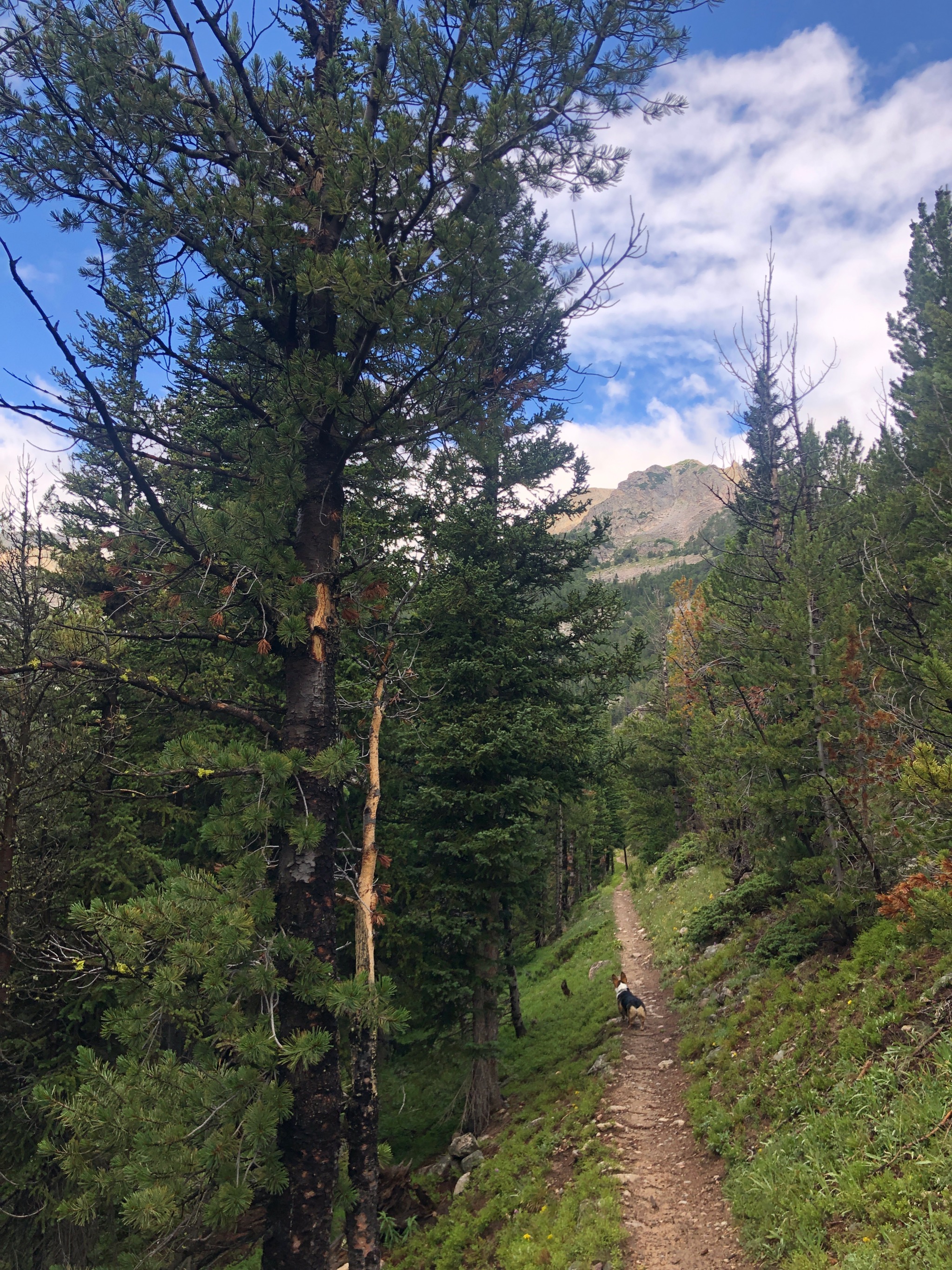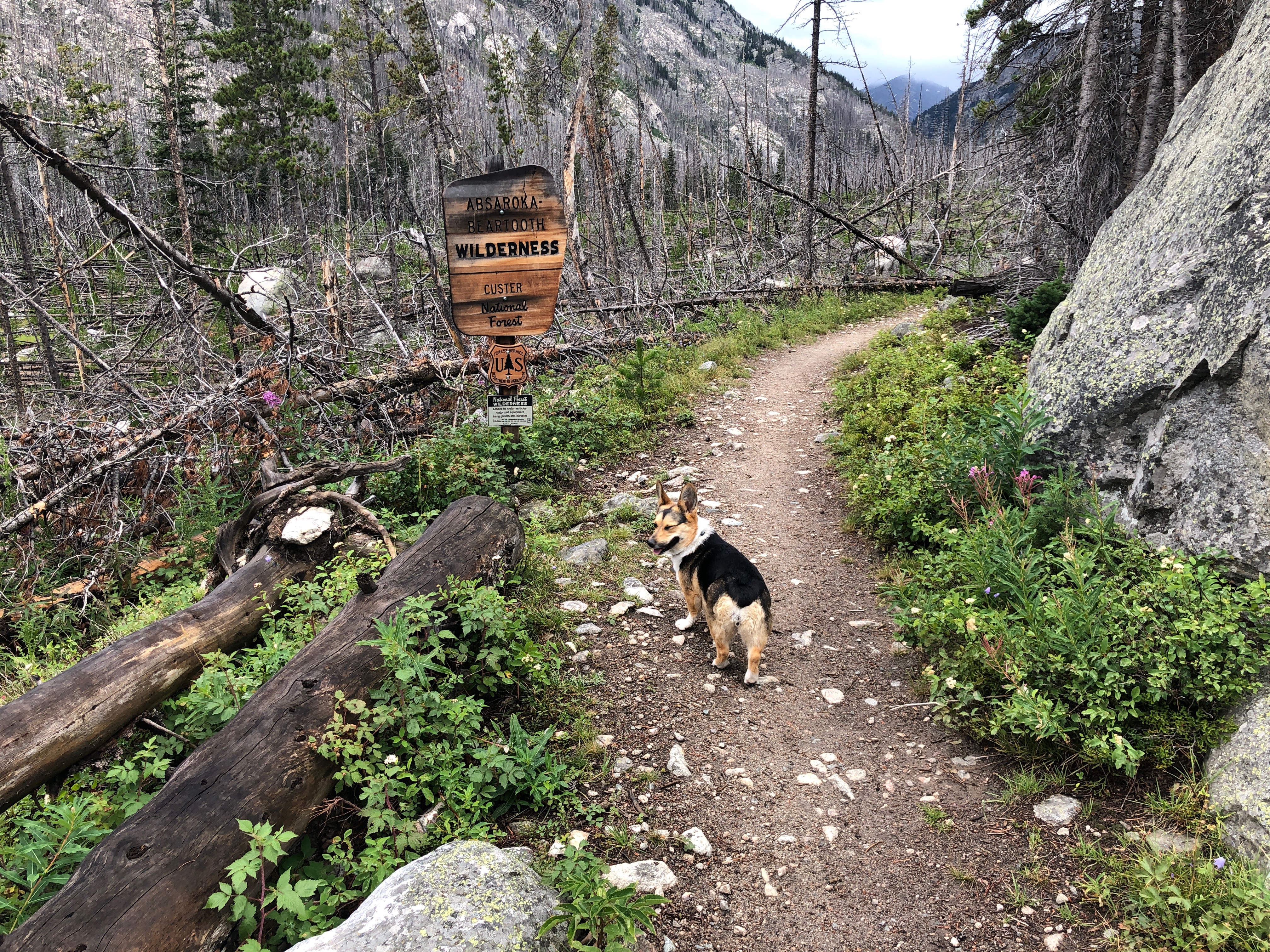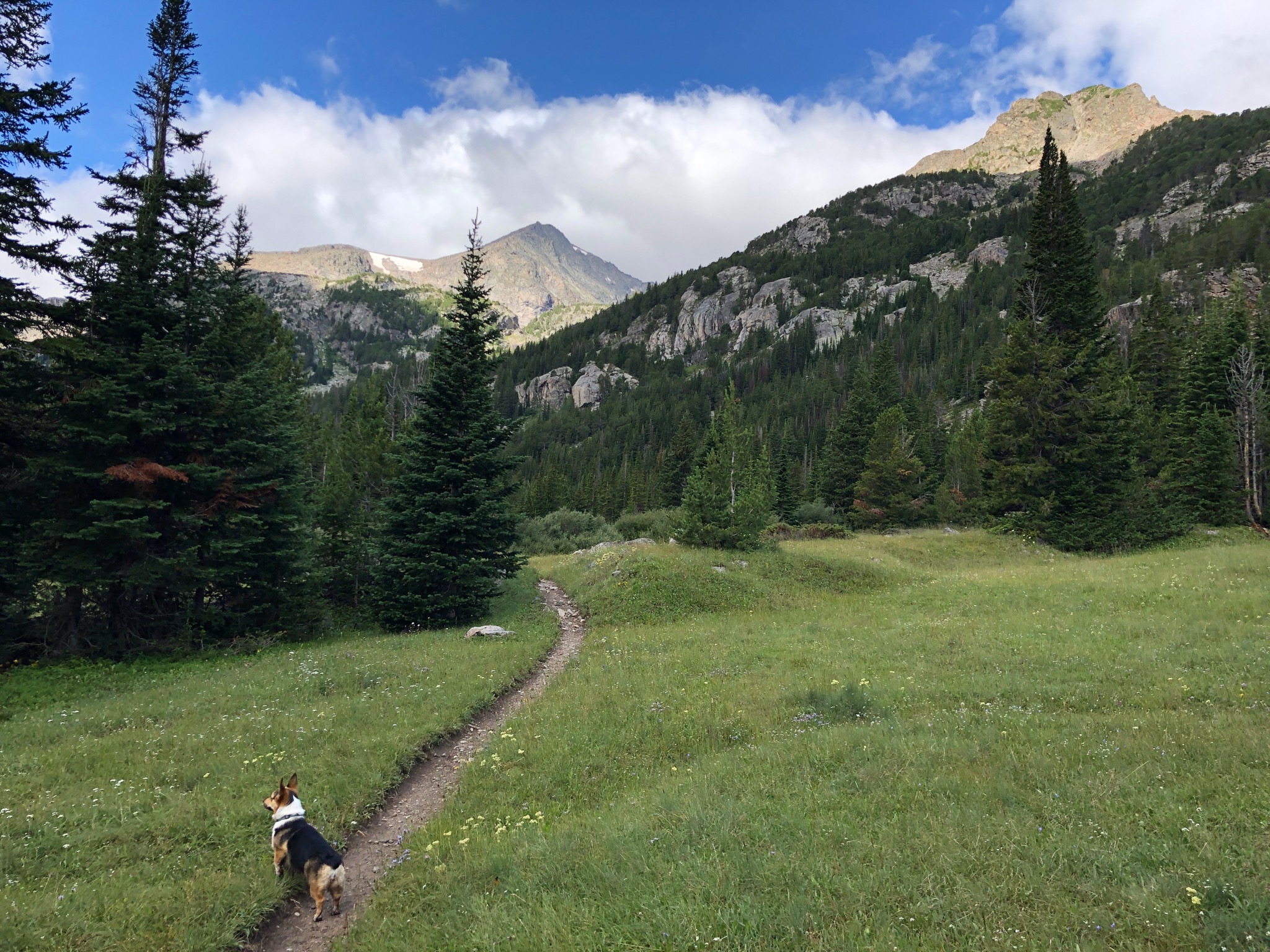 After doing the three-nighter toward Martin Lake, the dog and I went back to Red Lodge, rested up, and then hit the trail again for one more day hike before heading home. This was was out to Quinnebaugh Meadows, which I picked mostly because the dog doesn’t like being in the car and the trailhead at West Fork of Rock Creek is pretty close to Red Lodge.