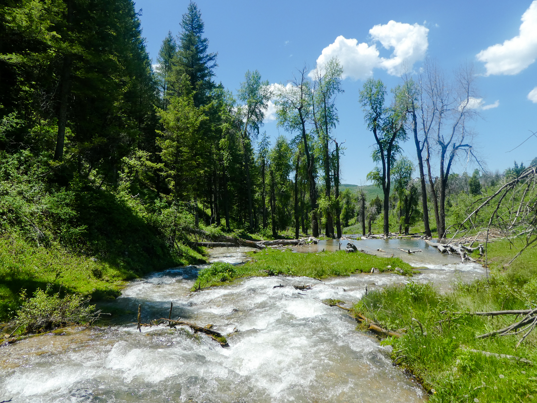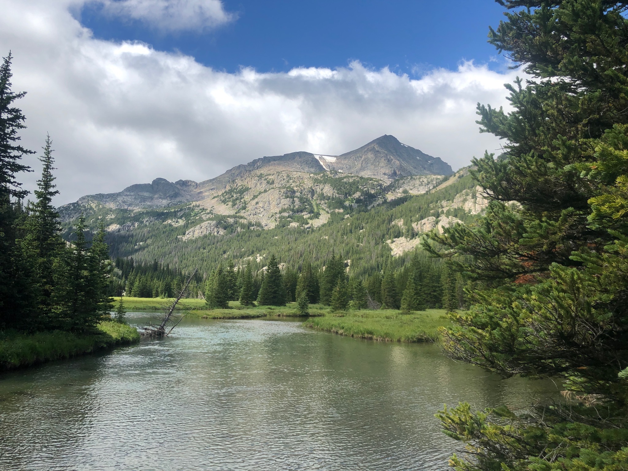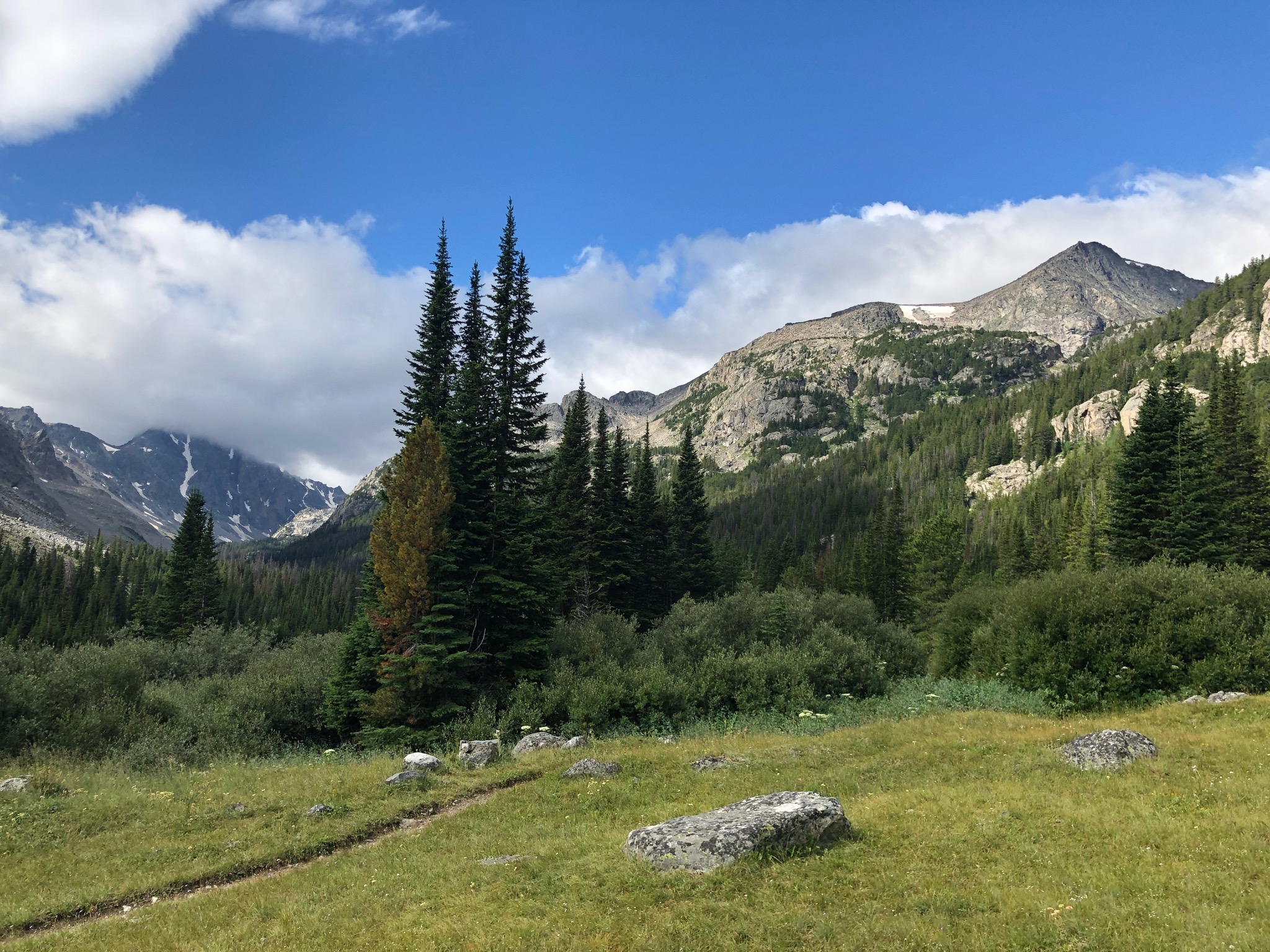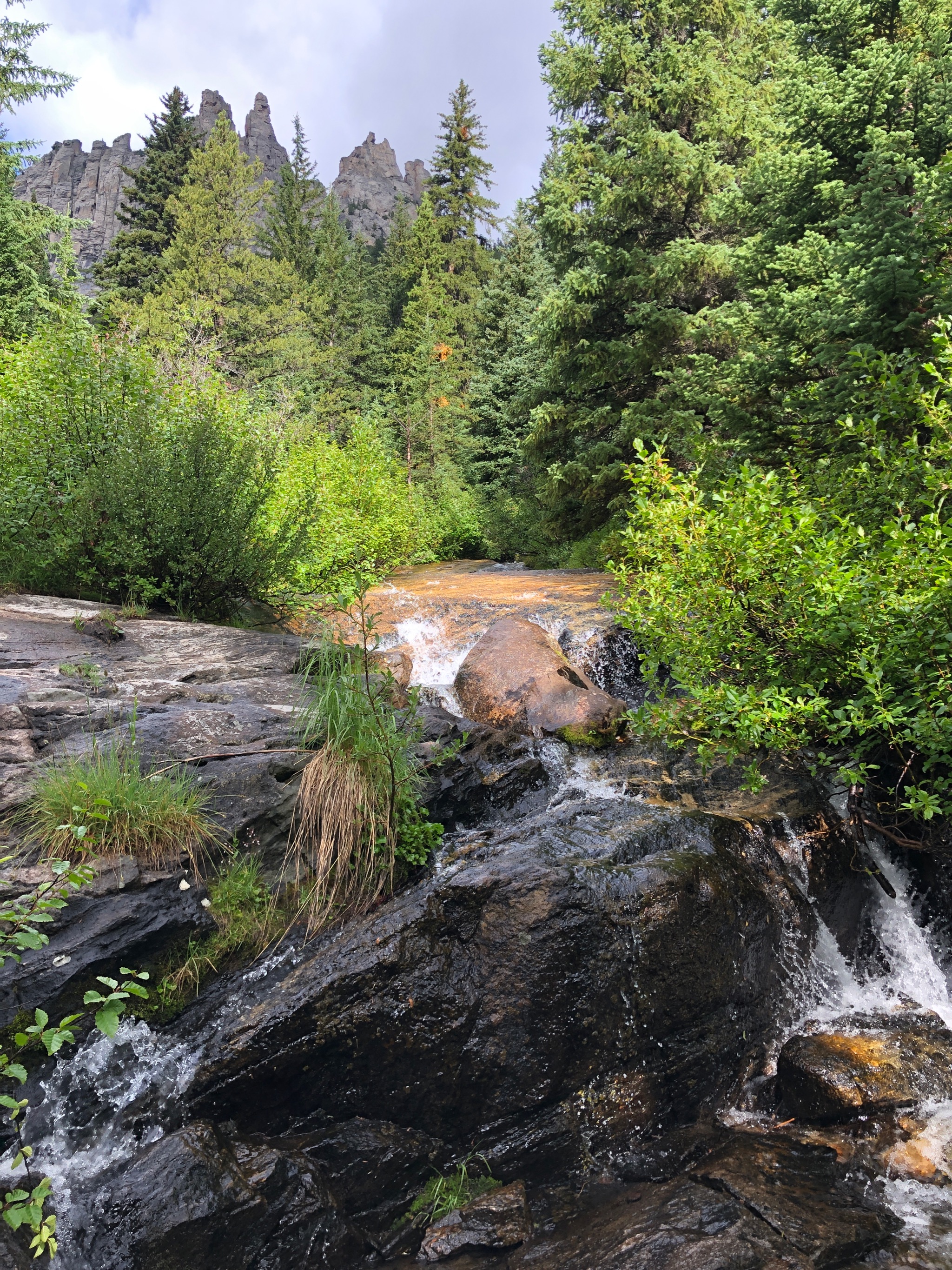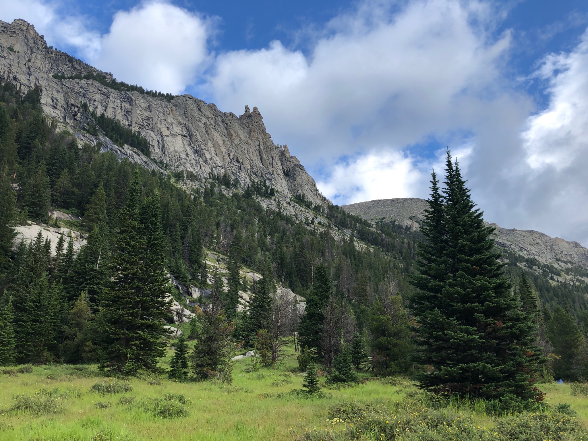 After doing the three-nighter toward Martin Lake, the dog and I went back to Red Lodge, rested up, and then hit the trail again for one more day hike before heading home. This was was out to Quinnebaugh Meadows, which I picked mostly because the dog doesn’t like being in the car and the trailhead at West Fork of Rock Creek is pretty close to Red Lodge.