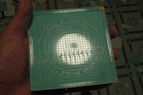 And does the double-money-back guarantee apply to tiles accidentally removed by ramming a 2-inch chisel into their sides? And I’m pretty sure the “100% Virgin Styrene” is the weirdest of the three. They were on these walls for 52 years — that’s a pretty good duty cycle for a square piece of plastic. Well done, guys, well done.