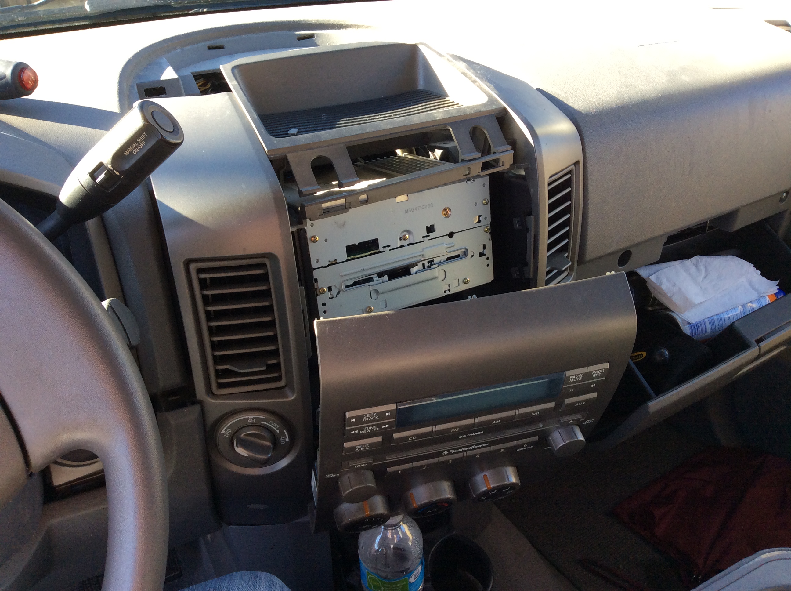 I ordered the replacement part the next day. A mere 14 months later later, I opened the box it came in and decided it was probably time to stop driving around with a hole in my dashboard. It turns out that you can’t just replace the area behind the small tray. Instead, you have to replace the entire center dash bezel. Here are some pictures I took at various stages of doing so (but somehow none at all from the very beginning).