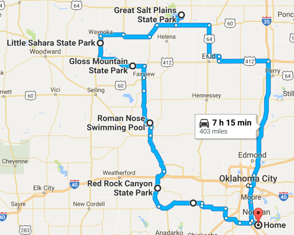 Got on the road on Friday the 28th. Had plane tickets back from SLC-OKC for Sunday the 30th. Drove up 35 to 240 to 40 west. Everything was fine. Passed through Elk City: everything was fine. Decided I should buy gas at the next town, called “Sayre”, which seemed fine. Then, while doing 85 and passing a pickup truck, the pavement started feeling rough or something. I finished the pass, but there definitely was a thing going on between my car and the road. Exit was 3/4 mile ahead.