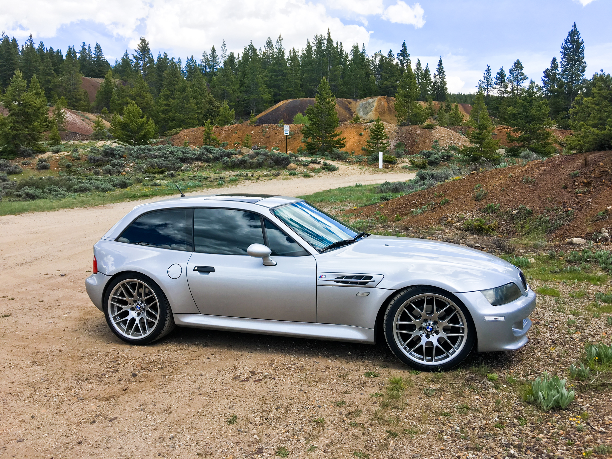 This car is a 2000 BMW M Coupe. It’s built to be a very uncompromising sports car. Uncompromising meaning, for instance, that in an attempt to lower the car’s weight and thereby improve performance, the designers decided against including a spare tire of any kind.