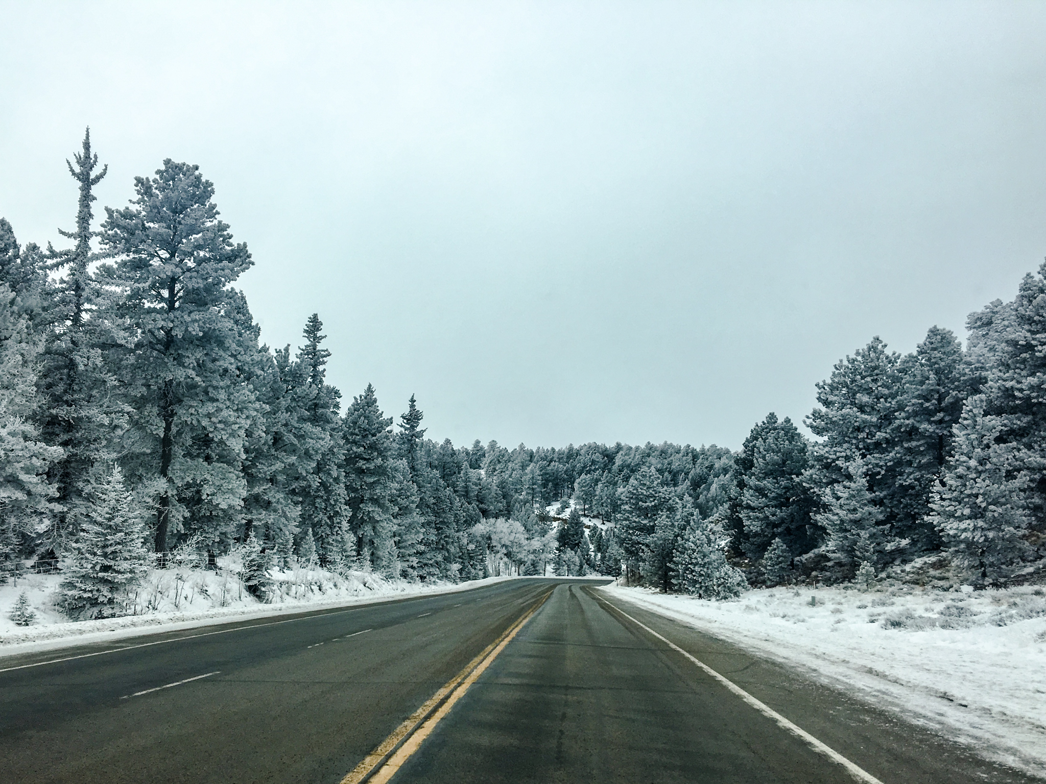 Okay, so this was actually the road to Monarch from Salida a couple days earlier. But the coverage in the oncoming lane was about what it was from Salida all the way to Frisco. The actual highway isn’t pictured because I had way too tight a grip on the wheel, and I was a little too focused to be breaking the camera out.